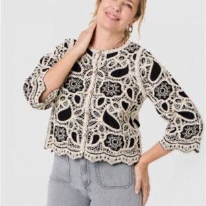 Chemisier brodé noir écru – Christine Laure