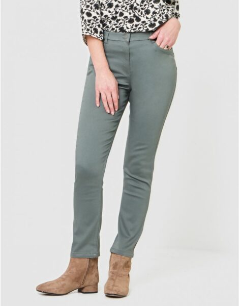 Pantalon stretch ajusté 7/8è coton vert kaki