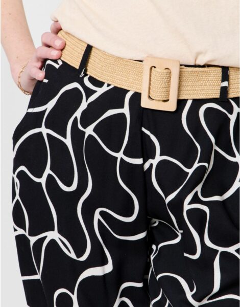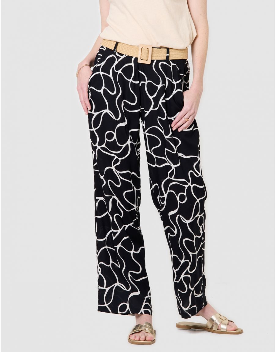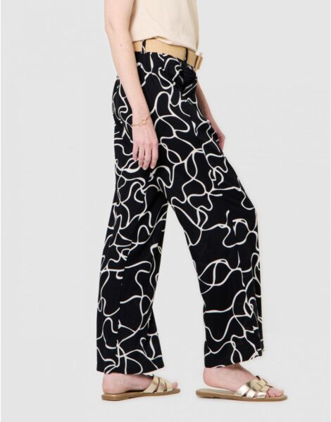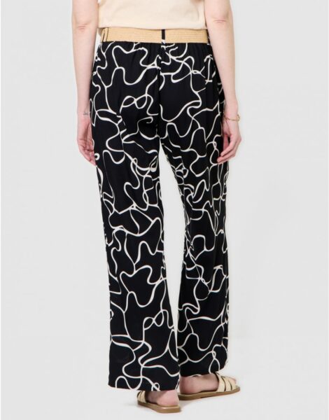 Pantalon fluide motif noir ecru – Christine Laure