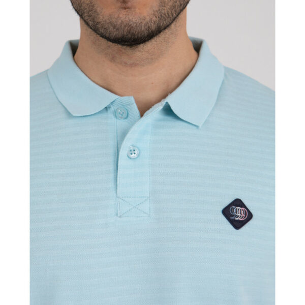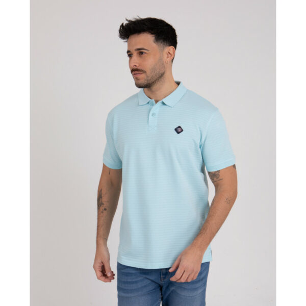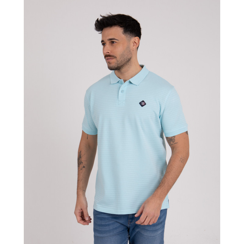 Ce polo manches courtes est réalisé en maille fantaisie 100 % coton, sélectionnée pour son toucher agréable et sa tenue impeccable. Le jeu de fines rayures ton sur ton apporte une texture subtile et élégante. Le col polo classique à deux boutons structure la silhouette avec sobriété, tandis que la coupe droite assure un porté naturel. Le badge PVC appliqué sur la poitrine et le logo ton sur ton au dos signent le modèle avec discrétion.