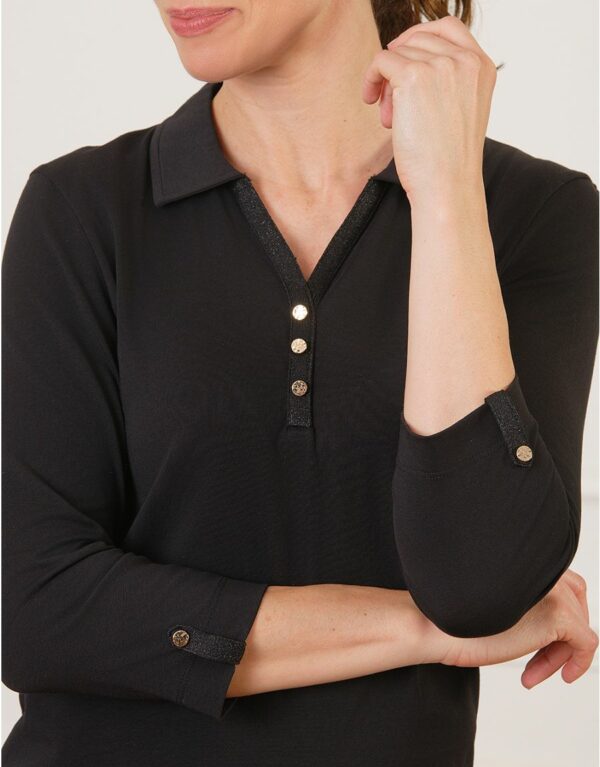 T-shirt polo noir en coton – Christine Laure