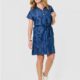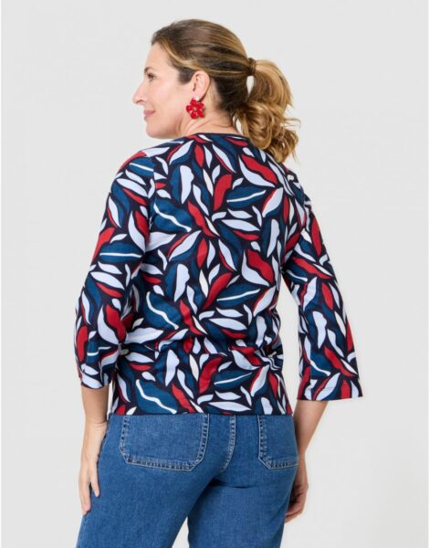 – Motif effet feuillage rouge et tons de bleu