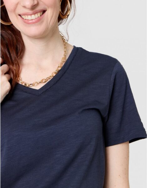 – Encolure V stylisée