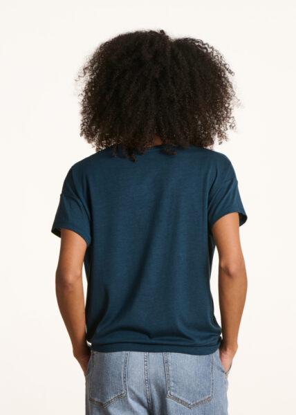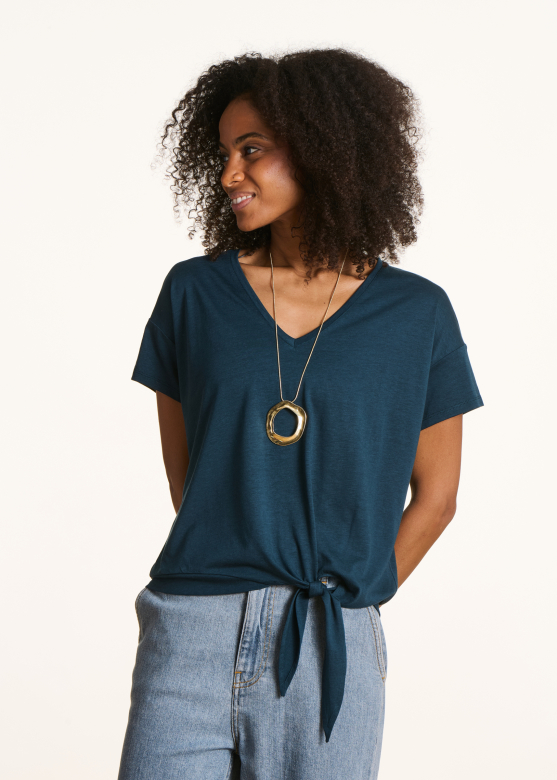 TEE SHIRT COUPE AMPLE, MANCHES COURTES, ENCOLURE V, LIENS A NOUER A LA TAILLE