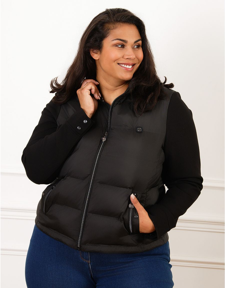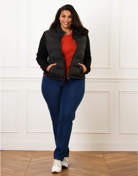 – Manches longues en tissu stretch uni noir avec boutons pressions
