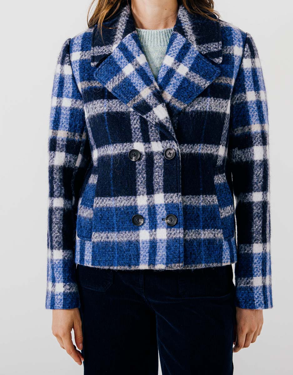 Veste courte à carreaux avec 30 % de laine